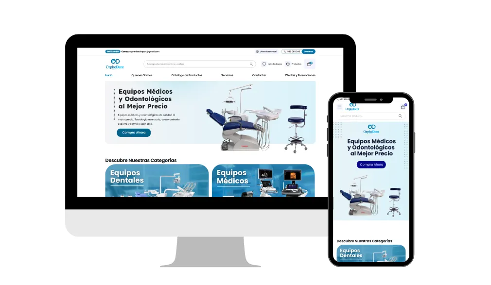 Plataforma de ventas B2B y B2C especializada en suministros dentales de alta complejidad, con un catálogo categorizado para facilitar la navegación técnica y cotización inmediata de equipos.