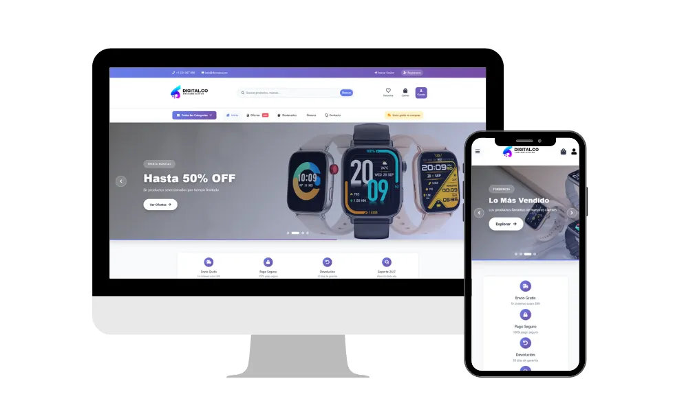 Boutique tecnológica de alto impacto visual con banners dinámicos y secciones de ofertas por tiempo limitado (flash sales) para incentivar la rotación de productos electrónicos.
