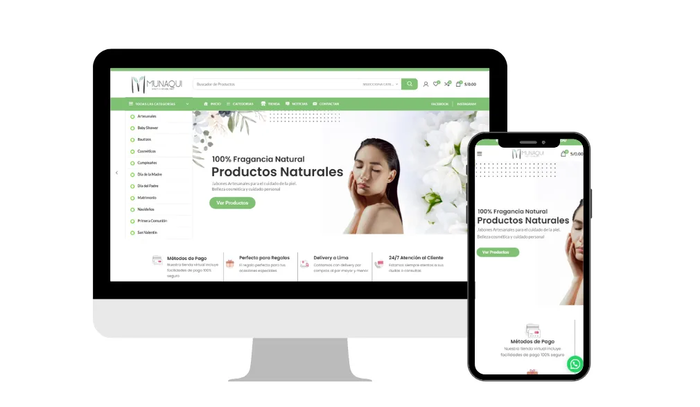 Tienda orgánica con un enfoque en la arquitectura de la información limpia, destacando los beneficios de los ingredientes y una navegación intuitiva por categorías de uso.