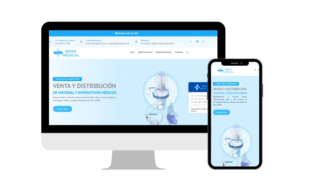 Tienda especializada en suministros y dispositivos médicos, con un catálogo categorizado para facilitar la navegación técnica y cotización inmediata de equipos.