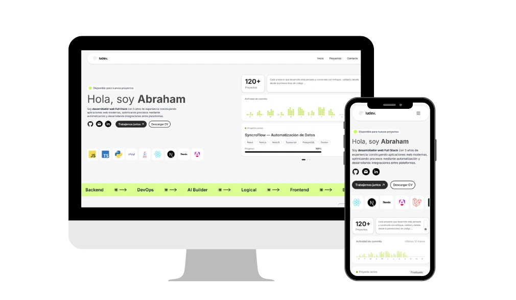 Soy Abraham, desarrollador full stack con 5 años de experiencia creando aplicaciones web, plataformas ecommerce y soluciones digitales enfocadas en resultados de negocio. He trabajado en retail y agencias de desarrollo y marketing, construyendo productos escalables que se adaptan a objetivos reales, desde interfaces bien cuidadas hasta sistemas backend sólidos y eficientes.